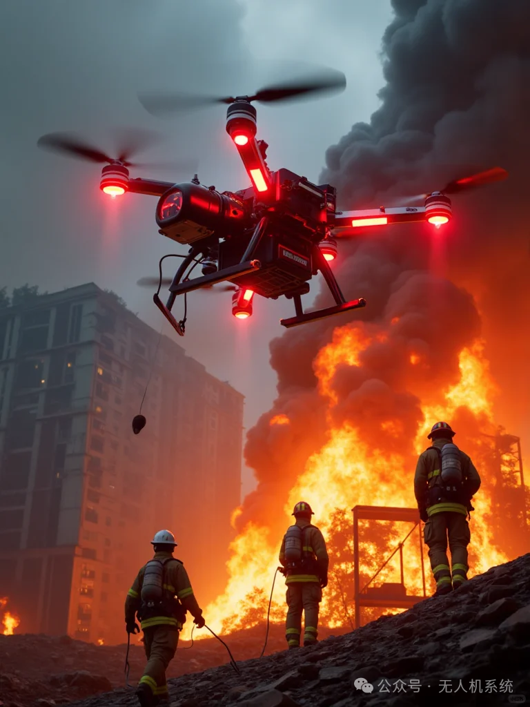 當(dāng)前,無人機(jī)技術(shù)正從“單機(jī)作業(yè)”向“空地一體協(xié)同”進(jìn)化。在2024年湖南岳陽(yáng)洞庭湖決堤搶險(xiǎn)中,無人機(jī)集群不僅完成災(zāi)區(qū)三維建模,還通過中繼通信保障前線與指揮中心的數(shù)據(jù)暢通,并投送首批急救包、食品等物資。福建福州消防演練中,長(zhǎng)續(xù)航重載無人機(jī)掛載高壓水炮,在高層建筑火災(zāi)中實(shí)現(xiàn)“垂直打擊”,破解了傳統(tǒng)云梯車高度受限的難題。